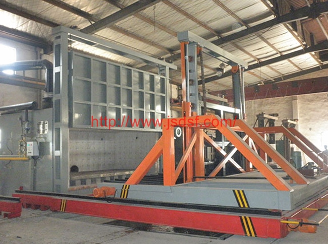 额定温度:750°C-1200°C工作尺寸:2600X1800X1500(mm)温度均匀性:±5°C- ±8°C装载量:10T主要用于锻造、铸造行业工件的热处理要求,能在短时间内快速下火淬火,且不会损坏到被热处理的工件。本套机组又多台罩式电