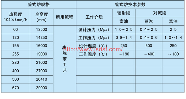 管式炉为立式炉,由煤气燃烧器, 炉筒辐射室,对流室,烟囱等主要部 件组成,其中煤气燃烧器喷火大小, 靠其调整套人工调节:炉筒呈困柱形,筒壁有耐火短钢板焊制而成,内壁有不少于120毫米厚的耐火材料,以保证