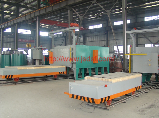用于35、45、高铬、高锰钢铸件、灰口铸铁件、球墨铸铁件、轧辊、油管 、钢球、破碎机锤头、耐磨衬板、大型焊接件淬火、退火、回火以及各种机械零件热处理。该电阻炉是由电动台车、炉壳、炉衬、炉架、电动炉门、自动控制系统等组成。