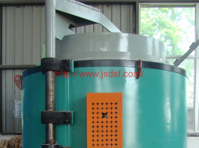 井式回火炉结构,外壳由钢板和型钢制成圆柱形炉体。炉盖内面采用不锈钢板制成。炉衬采用轻质节能微孔耐火保温砖砌筑。炉衬与炉壳夹层置硅酸铝纤维棉保温,间隙填充膨胀保温粉。电阻丝采用高电阻合金丝绕成螺旋状安装在炉膛的搁丝砖上。炉膛内放置有不锈钢装料筐。炉盖采用手动扛杆升降。为了使工件均匀加热,在炉盖上安装有耐热不锈钢轴和风叶制成的热风循环风机,工件在加热过程中,热空气在回火炉内上下循环以保证工件均匀加热。为保证操作在升降机构附近装有限位开关,此开关与回火炉控制柜电源联锁,炉盖关闭时(工作时)接通电源。当炉盖开启时限位开关即切断控制电源,因此加热元件的电源同时切断,以保证操作。井式回火炉出厂时配套自动控温柜,热电偶