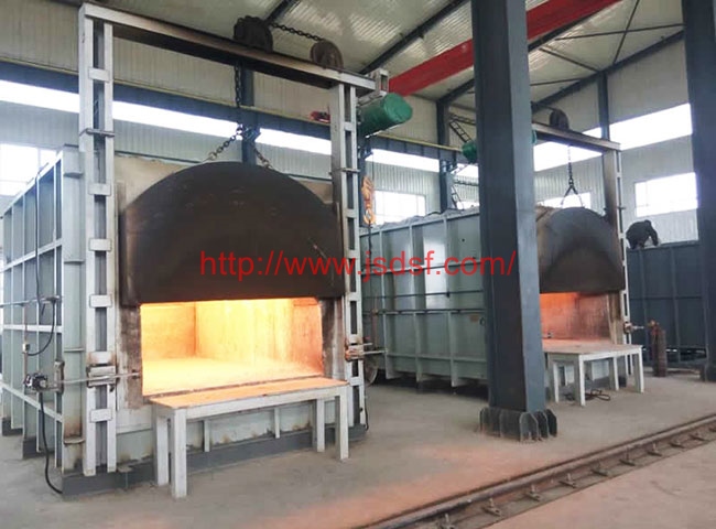 5、退火炉采用全纤维结构,台车及炉门采用柔性密封,具有炉体散热小,蓄热少,密封性好的特点,燃气退火炉采用N型火焰,燃具具有温度均匀,工件温差小的特点。