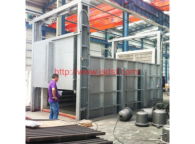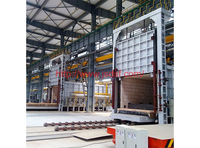 燃气式台车时效炉标准节能型周期式作业炉,节能结构。台车采用防撞击密封砖,炉门采用弹簧式压紧机构,自动密封台车和炉门,一体化连轨,不需基础安装,放在水平地面即可使用。主要用于高铬、高锰钢铸件、球墨铸铁、轧辊、钢球、法兰环件、工具钢、45钢、不锈钢等淬火、退火、时效以及各种机械零件热处理之用。