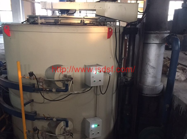 炉用密封风机装在炉盖上,供搅拌马弗罐内的气氛并使之成分均匀,同时使炉温趋于均匀。在炉盖上还装有三根工艺管通向炉膛马弗罐内:一根套管顶端安装三头不锈钢滴注器,由三头滴注器向炉内墒滴注甲醇,煤油或其它有机液体,各种液体均可调节,该套管上的氨气孔可用来向炉内输送氨气作碳、氮共渗之用(不渗氮时可将此管口封闭);一根套管为取样管,该套管上部的一管接头可与“U”型玻璃管压力计连接,用来监视炉膛马弗罐作用是维护炉压,保证渗碳或碳、氮共渗的正常进行,它由耐热钢制成 (铸件)。加热元件由电热合金丝绕成螺旋状,安装在炉衬内壁上,并通过引出捧引出炉外,渗碳炉温度由插入炉膛的热电偶,通过补偿导线将信号传送给自动控温柜,控温柜自动控制、调节并记录炉内的加热温度。渗碳炉配有冷却桶(选配),用来存放处理后的零件,桶盖上设有砂封槽。