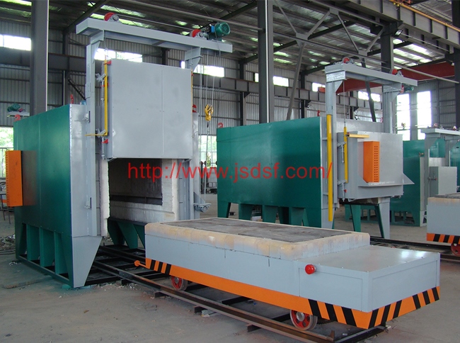 用于35、45、高铬、高锰钢铸件、灰口铸铁件、球墨铸铁件、轧辊、油管 、钢球、破碎机锤头、衬板、大型焊接件淬火、退火、回火以及各种机械零件热处理。该电阻炉是由电动台车、炉壳、炉衬、炉架、电动炉门、自动控制系统等组成。