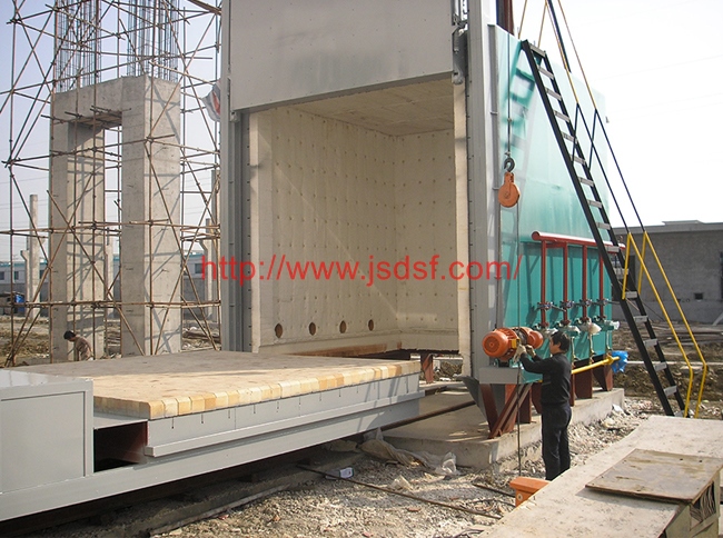 台车上安装有铬锰氮耐热钢炉底板或1200℃碳化硅炉底板以承载工件之用,为了防止工件加热后产生氧化皮通过炉底板的缝隙落入底部加热元件周围而造成加热元件的损坏,需要经常定期地吹扫台车炉底板下方的氧化皮,一般每周吹扫一次,吹扫时将炉底析吊起,用压缩空气将电阻丝槽内的氧化皮屑吹扫干净。