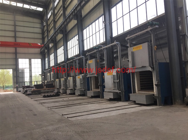台车式淬火炉系周期作业式电阻炉、主要供模具钢、五金模具、铸造件、锻打件等金属的淬火、退火、正火处理也可作为烧结炉使用。用于高铬、高锰钢铸件、球墨铸铁、轧辊、钢球、45钢、不锈钢等淬火、退火、时效以及各种机械零件热处理之用